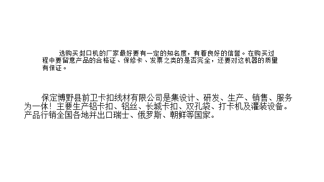 博野前衛(wèi)卡扣生產(chǎn)的打卡機(jī)可分為50型臥式打卡機(jī)、50型立式打卡機(jī)、氣動打卡機(jī)及腳踏打卡機(jī)。